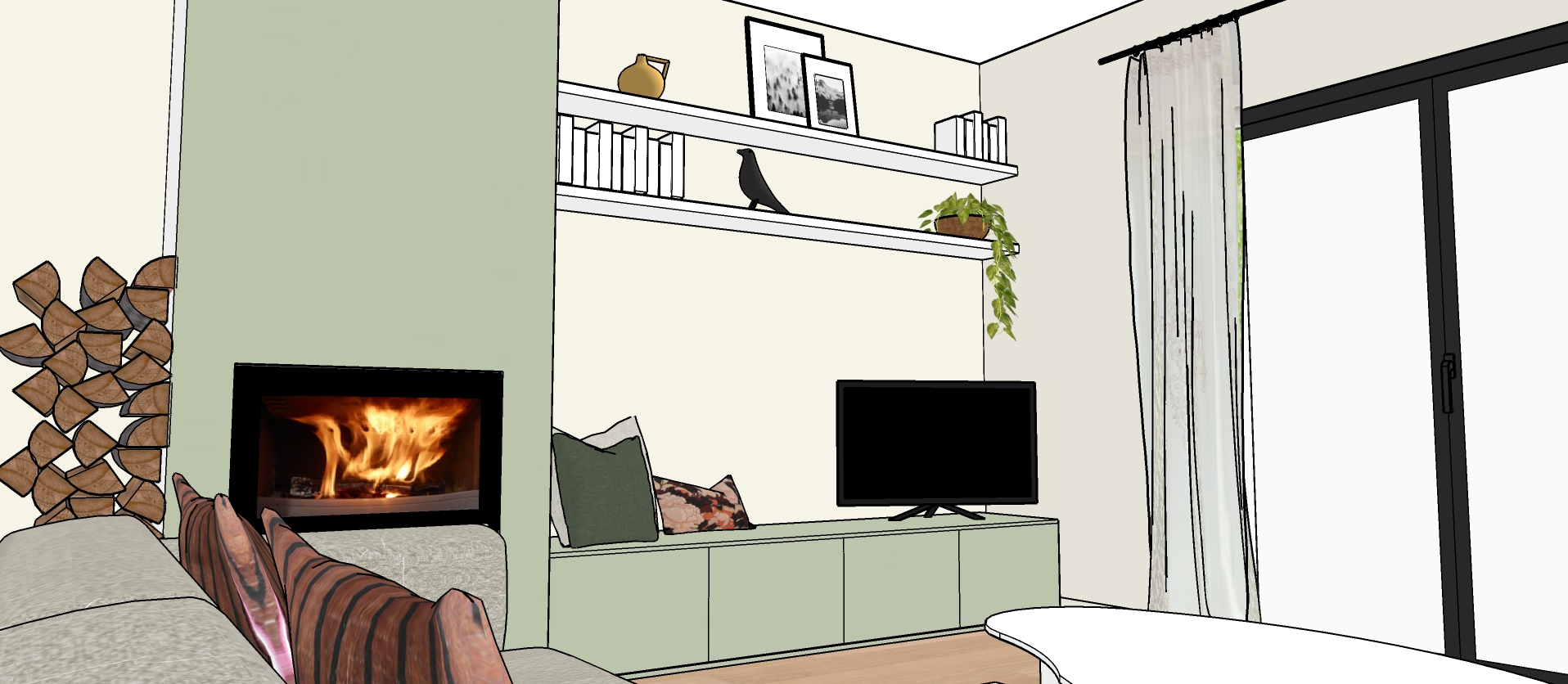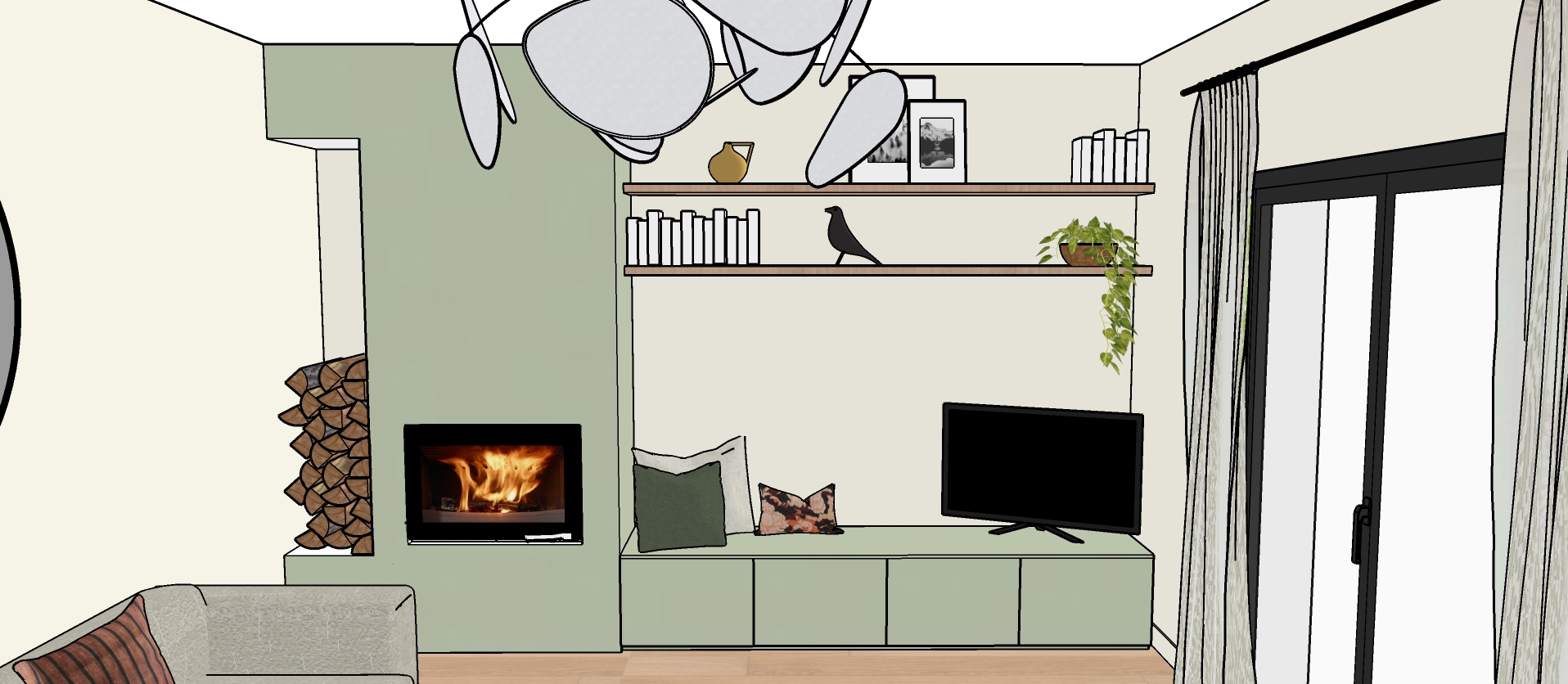 A l’étage un grand espace familial desservant les chambres, prendra place pour des moments conviviaux et plus intimistes qu’au rez-de-chaussée, et un petit espace bureau de télétravail sera installé.