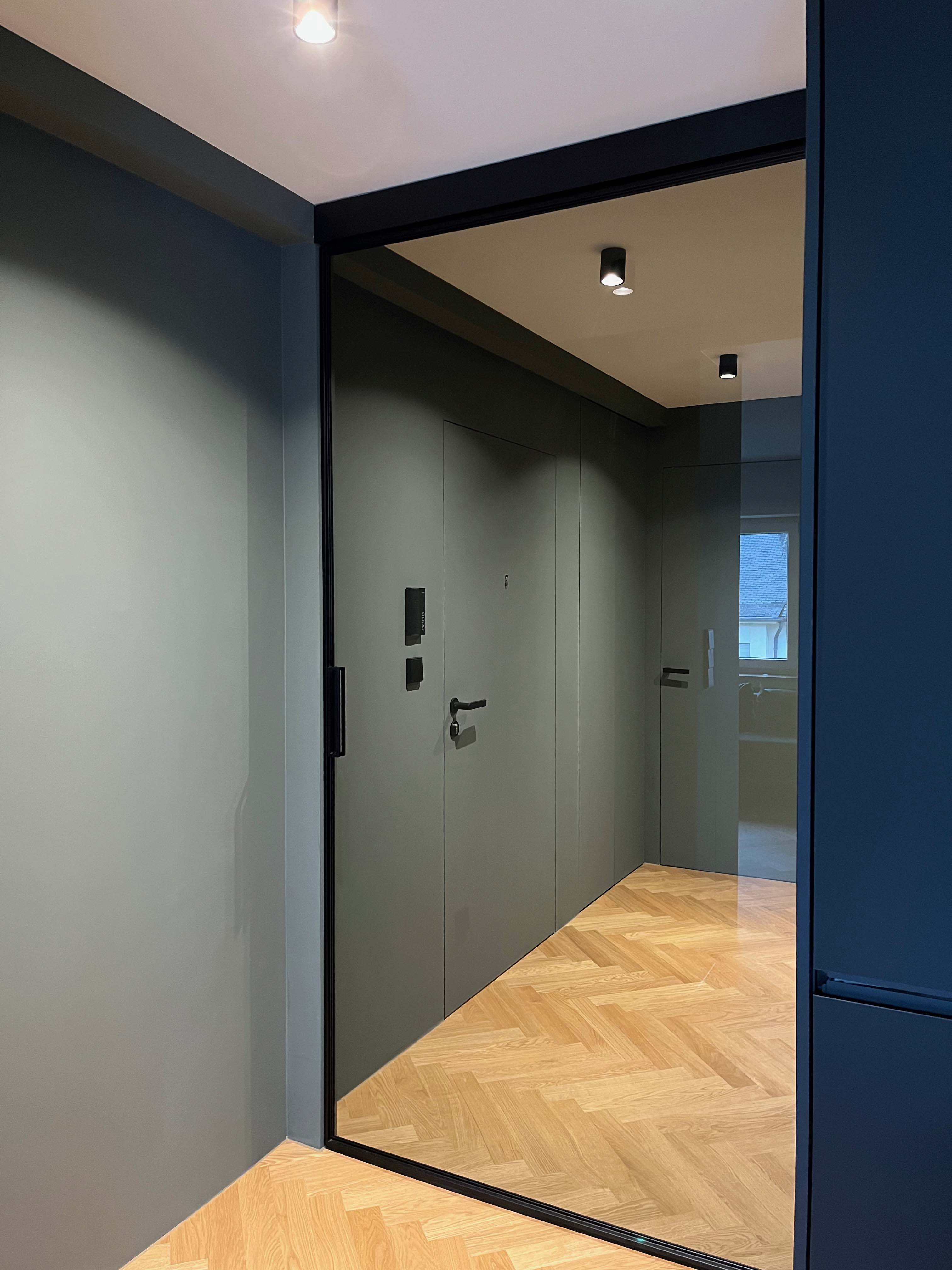 L’entrée a été travaillée comme une boîte sombre créant immédiatement un sas avec beaucoup de profondeur et immergeant instantanément ses habitants ou visiteurs dans une ambiance feutrée et chaleureuse.