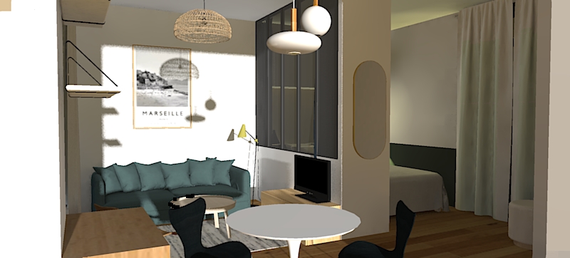 Rénovation partielle, aménagement et décoration d’un studio à Marseille